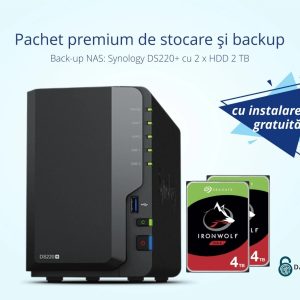 Pachet premium de stocare si backup: Statie de back-up Synology DS220+ cu 2 x HDD 4 TB