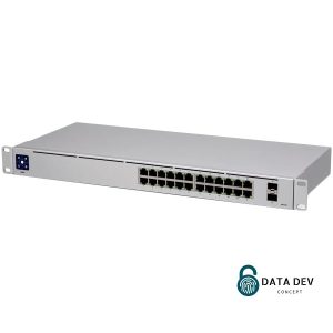Ubiquiti UniFi Switch 24 is a fully managed Layer 2 switch with (24) Gigabit Ethernet ports and (2) Gigabit SFP ports for fiber connectivity